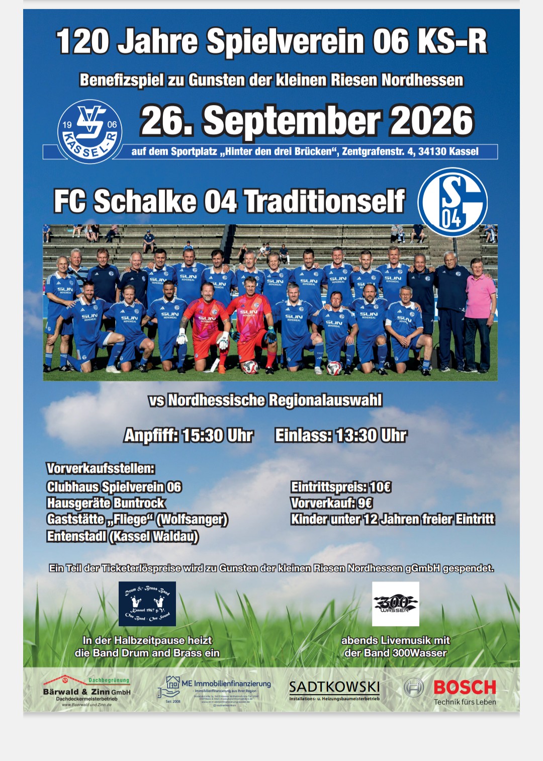 Anstoss FC Schalke 04 Traditionself gegen Nordhessenauswahl um 15.30 Uhr