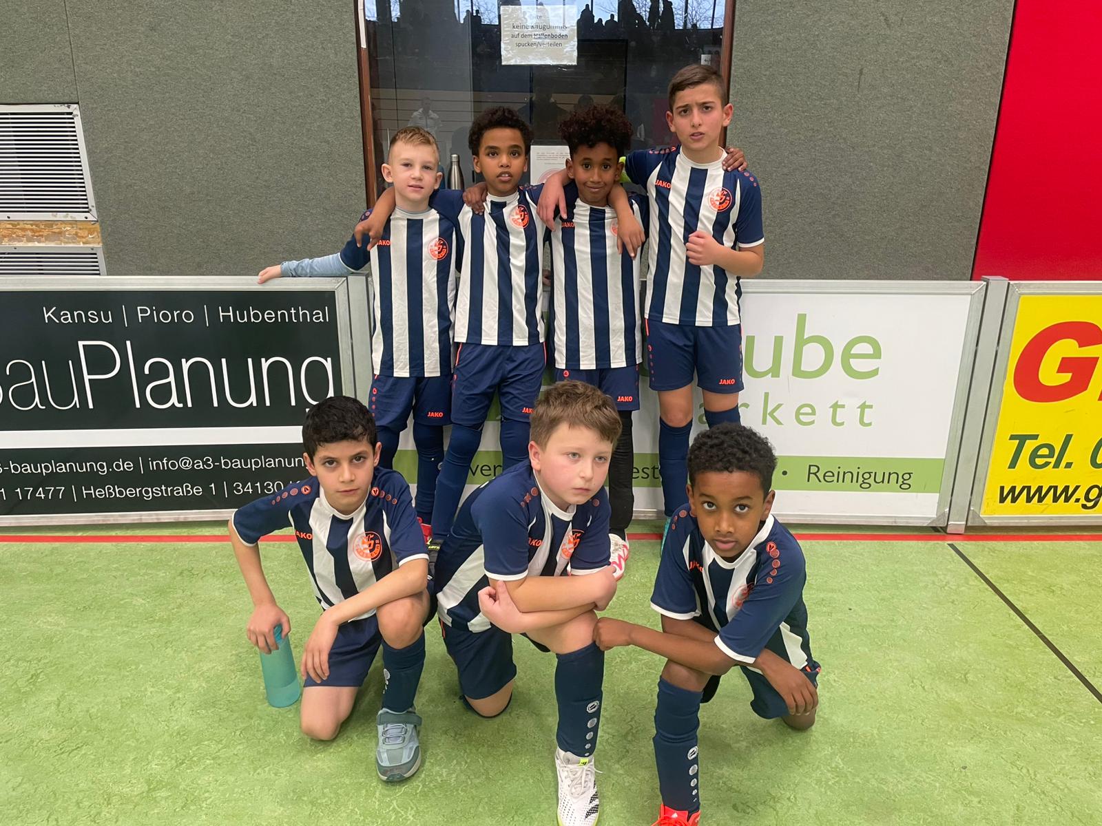 Im letzten Spiel ging es gegen die TSG Wilhelmshöhe (weiß). Ein eindeutiger und verdienter 4:0-Sieg wiederum durch Doppelpacker Saimann sowie Einfachtorschützen Suhayb und Hasan! Mit vier Siegen aus fünf Spielen wartet die Mannschaft gespannt auf die Endplatzierung! Um 13:59 Uhr dann Gewissheit: Erster Platz! Herzliche Glückwünsche!!!