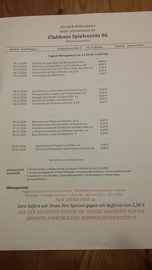 Folgend steht der Menüplan für den Mittagstisch der kommenden 3 Wochen! Bitte telefonisch vorher bestellen!