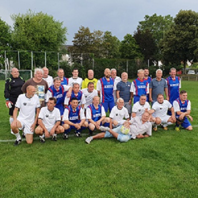 Am vergangenen Samstag fand das traditionelle Revival 2019 statt. Trotz des plötzlich aufziehenden Gewitters war die Stimmung wieder einmal toll. Nachdem die 1.Mannschaft des Spielvereins im Kreisliga-Pokalspiel gegen den Kasseler SV, trotz guter zweiter Halbzeit, eine 1:3-Niederlage einstecken musste, fand das Spiel der "Legenden" statt. Team Blau, betreut von Eddy Waschkowitz, führte zur Halbzeit 1:0 und hatte das Spiel gut im Griff. Dann kam der große Regen und die Halbzeitpause wurde verlängert. Nach 40 Minuten Pause konnte dann die 2.Halbzeit beginnen und Team Weiß kam wie ausgewechselt aus der Kabine. Der Pausentee hat der Mannschaft offensichtlich sehr gut getan und das Spiel wurde zu einem 2:1-Sieg gedreht. "So sehen Sieger aus" lobte Coach Joppo Stiehler sein weißes Team und machte im internen Trainerduell mit Eddy wieder Boden gut.