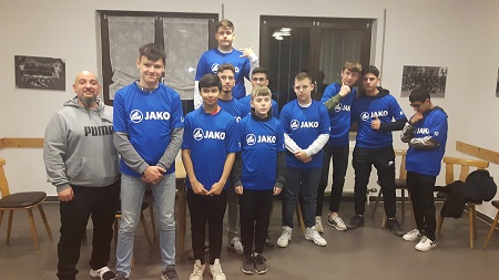 Am 18. Dezember hatten wir noch eine schöne Weihnachtsfeier mit der Mannschaft, den Trainern und einigen Eltern, die sich ordentlich in Zeug gelegt hatten, um leckere Salate, Kuchen und Nachtisch herzustellen. Dazu grillte Trainer Tony noch Bratwürste. Ein schöner Abend! Auf dem Foto die Mannschaft mit Co-Trainer Bahadir. Trainer Tony ist leider nicht mit auf dem Bild.